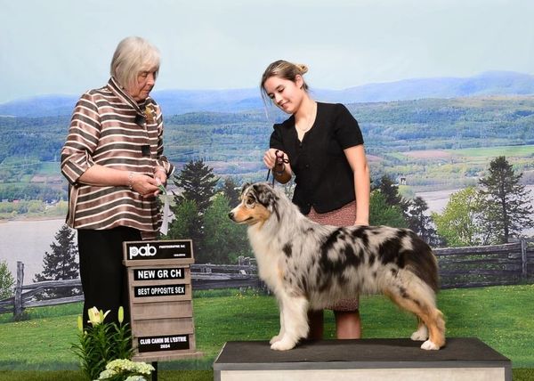 Vendredi, Best of Breed sous le juge Alejandro Rojas Sanchez et dimanche Best opposite sex sous le juge Todd Foley. Merci à vous d'avoir apprécié les qualités de Swing. Merci à la juge Pamela Bruce pour les beaux commentaires sur notre race....elle a dit que c'était la plus belle classe de bergers australiens qu'elle avait jugé dans le pays et que le jugement était très difficile. Nous serons à St-Gilles afin d'essayer d'obtenir d'autres points vers le bronze. Ce fût encore une fois un beau weekend en compagnie des meilleures partenaires possibles. Félicitations à tous pour vos succès du weekend.